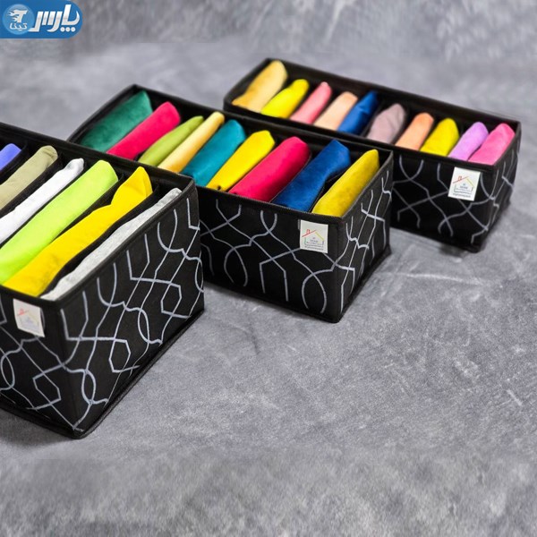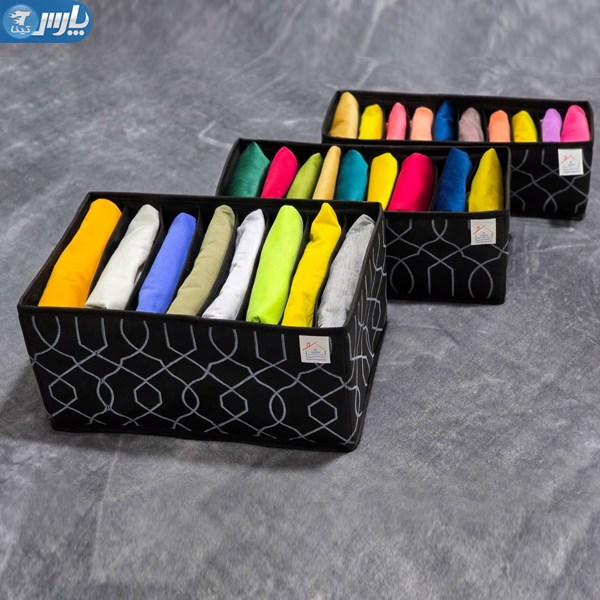 نظم بخشیدن به لباس های شما در هر ابعادی داخل کشو و کمد اولین و مهمترین خصوصیت نظم دهنده کشو پارچه ای است . محصولی با طراحی ظاهری ساده که از جنس پارچه مرغوب تولید و می توان به سادگی از آن داخل کشو و کمد استفاده نمود . نظم دهنده لباس داخل کشو دارای 8 خانه مجزا از یکدیگر می باشد که از هرکدام می توان برای نگهداری لباسی متناسب با ابعاد محفظه به صورت تفکیک شده و مجزا استفاده نمود . این امکان علاوه بر اینکه مانع از چروک شدن و یا خارج شدن لباس از حالت اولیه خود می شود ، قابلیت دسترسی سریع و آسان به لباس در موقع نیاز و همچنین استفاده حداکثری از فضای موجود داخل کمد و کشو را نیز برای شما فراهم خواهد کرد . امکان تاشدن و نگهداری از محصول در فضایی اندک را نیز به دیگر خصوصیات تقسیم کننده کشو پارچه ای می توان اضافه نمود . این محصول در 3 سایز مختلف با ارتفاع مشترک 14 سانتی متر ارائه می شود که هرکدام مناسب برای جای دادن لباس هایی متناسب با ابعاد محفظه های آن از جوراب ، لباس نوزاد تا تیشرت و ... می باشد و می توانید از میان آنها بر اساس نوع نیاز انتخاب و استفاده نمایید . مقسم کشو پارچه ای ارائه شده در بسته بندی 3 عددی شامل سه سایز مختلف می باشد .